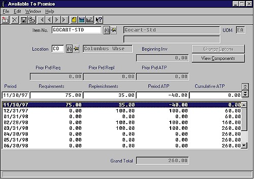 Exact Progression's Available to Promise Inquiry is one of the most advanced and comprehensive systems available. It provides on-line and current Available To Promise (ATP) information for individual inventory items and is a powerful tool to aid order processing, sales personnel and production planning. It virtually eliminates manually reviewing the master schedule required by other systems.